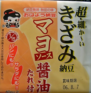 ![]() 超・細か〜いきざみ納豆 マヨソース醤油たれ付 納豆発祥 秋田の味 おはよう納豆 1/15パンにも!!サラダにも!! |