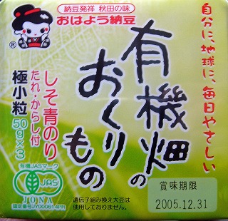 ![]() 有機畑のおくりもの しそ青のり 納豆発祥 秋田の味 おはよう納豆 自分に、地球に、毎日やさしい 極小粒 |
