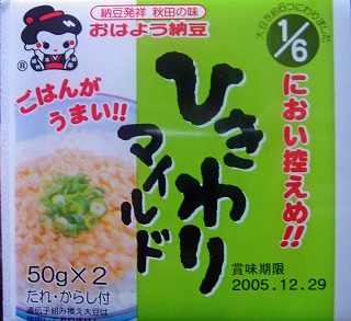 ![]() ひきわりマイルド 1/6におい控えめ!! 納豆発祥 秋田の味 おはよう納豆 ごはんがうまい!! |