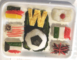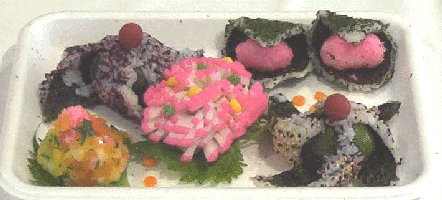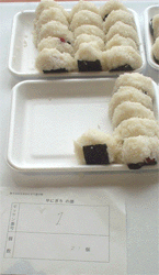 この競技は、1辺が7cm、厚さ3cm、小梅を入れて、海苔を巻