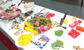 主催者が用意した材料を使って、15分間で具の使い方を工夫した芸