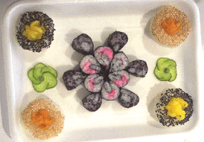 術的なおにぎりを作り、アイデア、綺麗さ、独創性の3項目で審査され