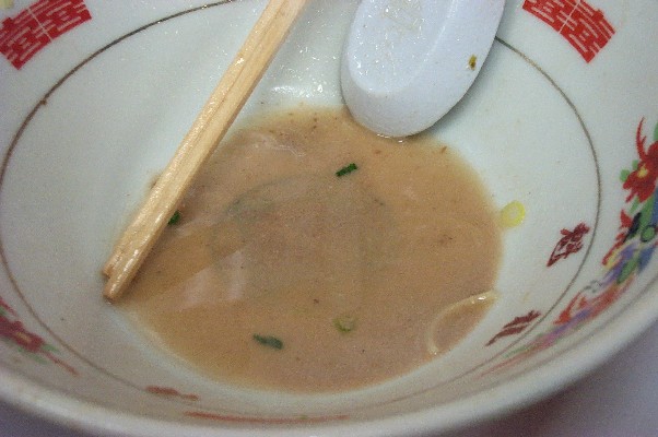麺、具を食べ終わり、残りのスープを飲み干そうとすると、骨髄