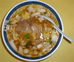 ンソメスープのような醤油ベースの薄い色のスープが湯気を