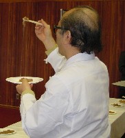 やはり国産大豆の強さが目立ち、中国産大豆での入賞は、宮城県の細川食品さん「ふるかわ納豆」だけでした。また、北海道のメーカーさんの底力も垣間見たような気もします。発表後、高星進一全国納豆協同連合組合連合会会長より、「納豆の質がよくなってきており、優劣をつけがたい。これを機会に、皆さんには納豆の良さをさらに知ってほしい。今年も納豆の需要は伸びている。この追い風を生かしたい。これは今回出席頂いている永山先生や須見先生のお陰によるところも大きい。これからも美味い納豆の提供にむけて頑張っていきたい。ありがとうございました」とのご挨拶があり、続いて須見洋行倉敷芸術科学大学産業科学技術学部教授、永山久夫食文化研究所オーナーより、以下のようなご挨拶がありました。須見教授:納豆の売れ行きがいいそうですが、一般の方が興味をもって本物の食品を求めてきていると思います。納豆は女性ホルモン不足やボケの問題に答えてくれる食べ物でありますし、江戸時代ぐらいから変わらなく輝いている食品です。和食の見直しとともに納豆が脚光を浴び、欧米でも注目されています。永山先生:自己責任と言われている現代、健康も自分で管理するのものであり、その管理で注目されているのが納豆であると思います。美味しく食べることができ、安価でしかも身近にある食品である納豆は、時代が要求している食品でもあります。また、レシチンや大豆イソフラボンなどは、IT時代、高齢化社会に必要な栄養であり、まさに時代の食品です。ソルトレイクオリンピックでの成績不振は日本人の体力のおとろえであり、食の乱れと感じています。皆様を含む日本人には、これから納豆を基本にしっかりとした食生活をおくってほしいと思います。ここで質問タイムとなりましたので、早速の質問。