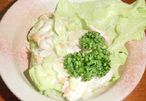 ダシ汁ごとズルズル食べる点で、イカ納豆と同系統の料理となり、ますので、献立のバランスを考え、ご飯にかける納豆料理にするなどの明確化が必要ではないでしょうか。ダシ汁の扱いはイカ納豆と同じ思いですが、大粒納豆ではなく小粒納豆もしくは引き割り納豆にして頂き、おろした芋とのズルズル一体感を楽しめるようにしていただければと思います。・納豆サラダ引き割り納豆とレタス、ハムをマヨネーズで合え、黒胡椒を効かせたもの。