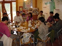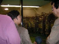 平成13年4月14日(土)、くめ・クオリティ・プロダクツさんにご協力頂き、茨城県久慈郡金砂郷町にあります高柿工場を見学させて頂きました。参加者は、らいきさん、鈴木さん、夢追い人さんご夫妻、小野さん親子、稲津さんとご同僚の方、小治さんのご同僚の方、計12名。日立大宮駅から高野さん、営業の藤田さん、中江さんにご案内頂き、畑に囲まれ落ち着いた研究所といった感じの「こしらえの丘」313-0113 茨城県久慈郡金砂郷町高柿1194-1電話 0294-76-0099 FAX 0294-70-3310受付時間 月〜金 9:00〜17:00につきました。まずは、「こしらえ工房」でお茶を頂きながら、副本部長であられます高橋さんより施設全体のご説明を頂きました。この「こしらえの丘」は、高柿工場の他に研究室・北関東営業部の棟、こしらえ工房で構成され、工場棟は選別棟と別になっているそうです。説明をお聞きした後、工場棟に移動し、くめ・クオリティ・プロダクツさんの社史、そして今後の工場の展開について、ご説明して頂きました。手薄となっている関西圏への進出基盤として、和歌山工場を建設するなど、ナショナル・スタンダード系メーカーさんとしての意気込みを感じます。納豆の製造過程はガラス戸を通しての見学となりましたが、皆さんがガラス戸を突き破らんばかりの勢いで熱心にご見学されておりました。工場内の機器は、大豆を煮る釜とパッケージにつめる盛り込みのが並列に配置されており、高橋さん曰く、「これが納豆工場の理想型」ということでした。釜と盛り込みを垂直に設置して、省スペースを実現している納豆メーカさんもありますが、洗浄や使い勝手から並列方式の方がメリットがあるとの判断があったのでしょう。