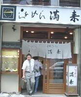 平成13年7月24日、東京・新宿界隈では有名な納豆ラーメンのお店「らあめん 満来(まんらい)」(東京都新宿区西新宿1丁目4−10 電話03-3340-2727営業時間 11:00〜21:00 日祝休日)に、行ってまいりました。天気は、カンカン照りの気温35度オーバー。最大電力も更新しております。この暑いなか、ラーメンを食べる人は少ないだろうと思いつつ、お店に入りますと、ハグハグと分厚いチャーシューを囓りながら、ラーメンを啜っている人が半分、もう半分はつけ麺のようです。早速、券売機の「納豆ラーメン 870円」を押し、席につきます。