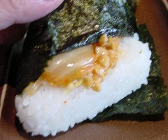 銀座にある「お米ギャラリー」さんとは別の系列として、JA宮城さんで運営している「お米ぎゃらりぃ」で、美味しい宮城米で握った納豆おにぎりが評判という噂を聞き、平成14年2月22日、「お米ぎゃらりぃ仙台駅前店」さんにお邪魔しました。「みやぎお米ぎゃらりぃ仙台駅前店」宮城県仙台市青葉区中央2−6−36中央レントビル1/2階電話/FAX 022-213-551511:00〜21:00宮城米の美味しさを伝えるためのお店ということで、一階はお持ち帰り用のおにぎりと簡単なお惣菜が売られています。ではでは、と評判の納豆おにぎりを探すと、