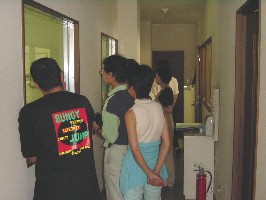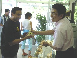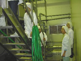 平成13年7月1日、納豆バンジー終了後、群馬県下仁田町にあります、下仁田納豆さんの工場を見学させて頂きました。参加者は、納豆バンジーと同じく、Takemaさん、おしんこどんさん、アメリカ人のダニーさん、竹中さん、遠藤さん、三井田の計6名。南都社長へのご挨拶もそこそこに、南都社長の奥様から工場全体のご説明をお聞きしながら、ガラス越しに工場を見ます。