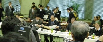 少ない脳納豆、いや脳味噌ながら、「日本の農と食」について、一応考えておりますので、平成14年2月17日(日)、農林水産省7階講堂にて行われた、「食と農について武部農林水産大臣と消費者が語り合う会」に行ってまいりました。内容の方は、後半にご報告とするとして、私が感じた大きなところは、次の3点です。1.農林水産省の軸足シフト 生産者から消費者へ2.厚生労働省との縦割り問題3.トレース・アビリティ・システム2と3については、あらかた懇談会のなかで議論されたのですが、1については、参加者の皆様に異論がなかったようであまり議論されませんでした。*3は、実業家にとってはかなりのビジネスチャンスと思います。軸足のシフトというのは、いままでの農林水産省が生産者サイドで運営されており、消費者サイドに立っていなかったとの反省から、軸足を「生産者」から「消費者」に移す改革です。一見、手放しで賛成したくなるようなご意見なのですが、私はバランス感覚を欠くのではないかと思っております。消費者に目を向けるというのは、当然のことで大切なのですが、農林水産省自体、国策としての生産者支援、保護が設置理由のはずです。時には生産者の支援、保護、時には厚生労働省とともに消費者へのサービスと臨機応変なパワー配分が必要ではないでしょうか。優秀な方が多いのでそのようなことはないと思いますが、言い方だけの問題であったにしろ、「軸足のシフト」ではなく、「生産者と消費者をつなぐ、やじろべえ」とでも宣言し、バランス感覚をアピールしてほしかったと思います。エラソーなことを書いてスイマセン。勉強不足の点があると思いますので、ご指摘、ご意見頂ければ幸いです。ちなみに、当日はブッシュ大統領の来日もあったため、霞ヶ関は警備の警察官の方が多くいらっしゃり、「あ〜、これからどちらに行かれるんですか?」と、プチ職務質問され、一応の受け答えをしたものの、「小型プラスチック爆弾かなんかで、爆弾テロなんかしないんで大丈夫ですよ」などと余計なことを言って、かなり不審がられてしまいました。思春期の頃、いかがわしい本を読んでいるところを「あっ、お兄ちゃん、エッチな本見てる!」と妹に見つかり、「いいか、お母さんに言うじゃないぞ!」と釘を刺したものの、トコトコと母親の元に駆け寄った妹が、「お母さん!お兄ちゃんがエッチな本見てたなんて