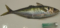 というアドバイスがやっと分かりました。鰺は口の皮が薄い ので、慌てて釣り上げると、口の皮が破れ、針がはずれて、 再び海の中に戻る(バラす)ようです。 次はしっかりやるぞ!と思っていたら、来ました!今度は ゆっくりと釣り上げて、見事クーラーボックスのなかに入り ました。 約33cmでしょうか。証拠にするため、隣の人にライター を借りて、大きさが分かるようにして記念撮影。 ![]() その後は次々と鰺がかかり、サビキと言われる針が多くつ いた仕掛けでしたので、一度に4匹かかったりと絶好調。 途中、なぜかビックリした目の鯖もかかり、こっちが驚き ましたが、順調に釣り続け、約3時間で終了となりました。 ![]() 沖から港に帰る頃には雨もやみ、心地良い潮風を頬に受け ながらのクルージング。
