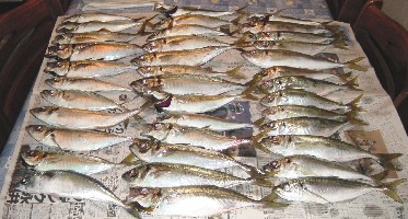 家に着いたところで、獲物を数えますと、真鰺が35匹