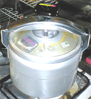重さ)を6L容量の2個の圧力釜を同時使用で弱火で約1