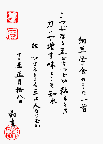 尊敬する山本晶先生(慶應義塾文学部名誉教授)より頂いた納豆学会の詩です。